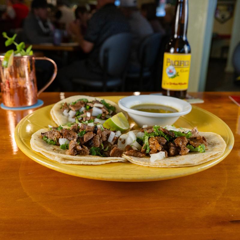 Three tacos, your choice of carne asada or pork. Served in soft corn tortillas with cilantro and onion and a special house sauce.