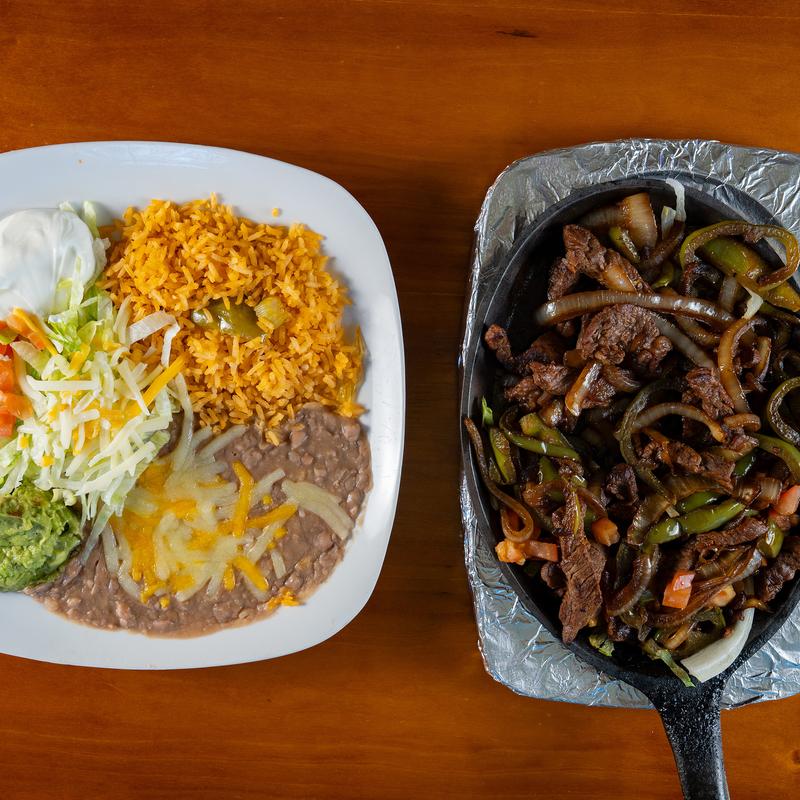 Beef, onions, bell peppers, and mushrooms, lightly grilled, served with guacamole.