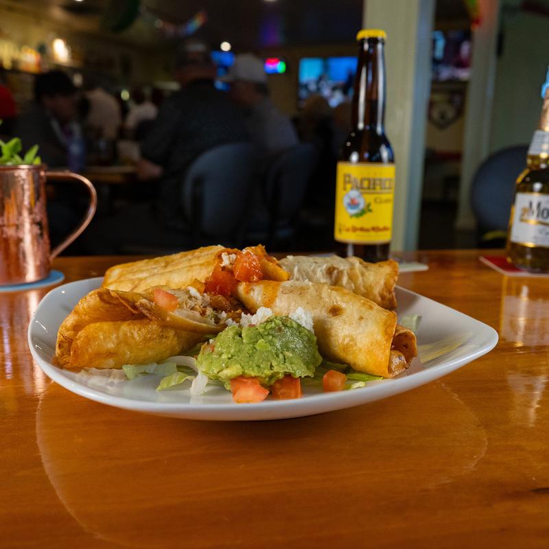 Flour tortilla with chicken, rolled and deep-fried. Served with guacamole and sour cream. Shredded Beef +$2.00