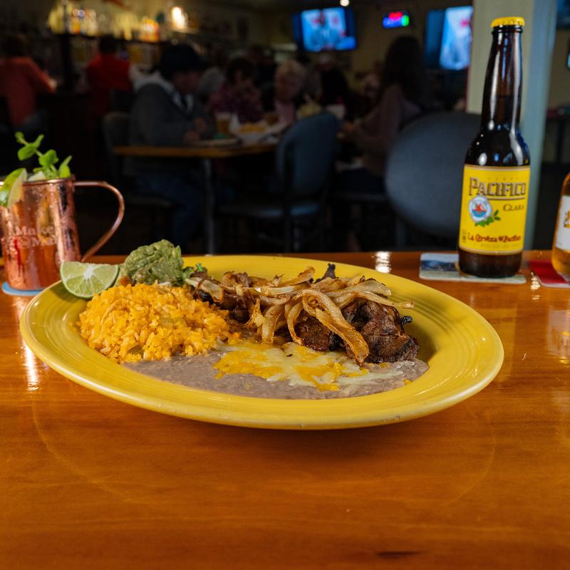 Served with rice and beans. Your choice of beef, chicken, or picadillo on most items; additional meat options available for an additional charge.
